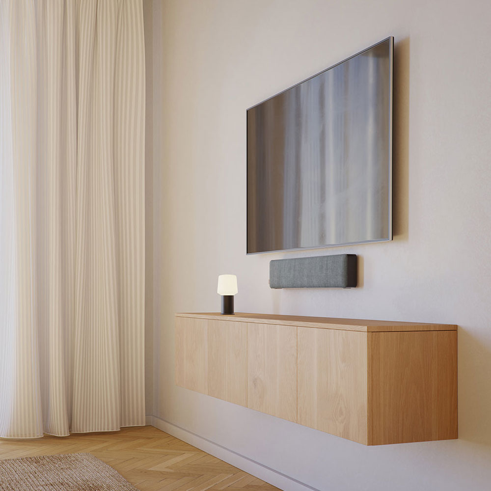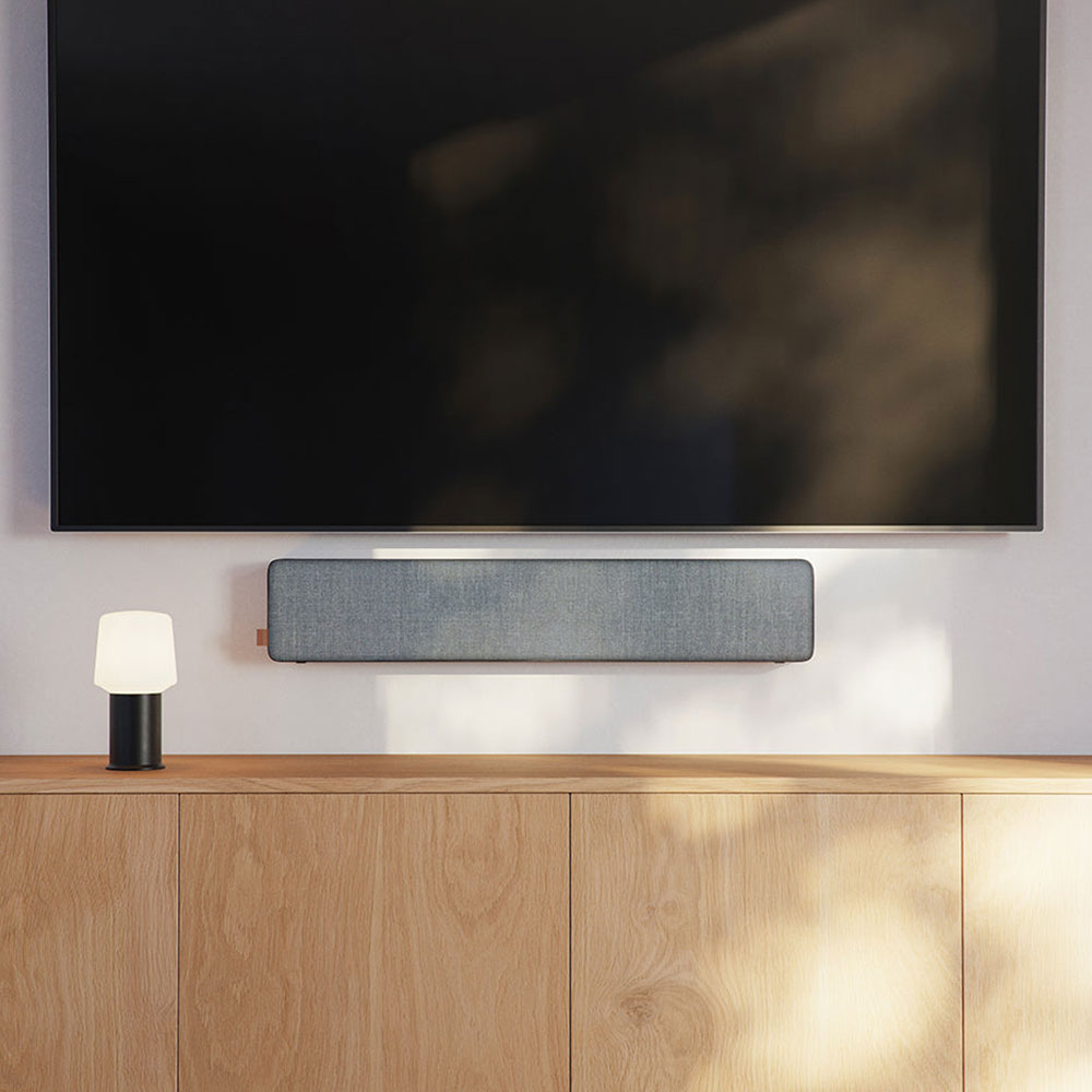 Wave Soundbar er en musikoplevelse i tidløst dansk design, der bringer en biografoplevelse og høj kvalitet ind i stuen med sin exceptionelle lyd og elegante, slanke udseende.