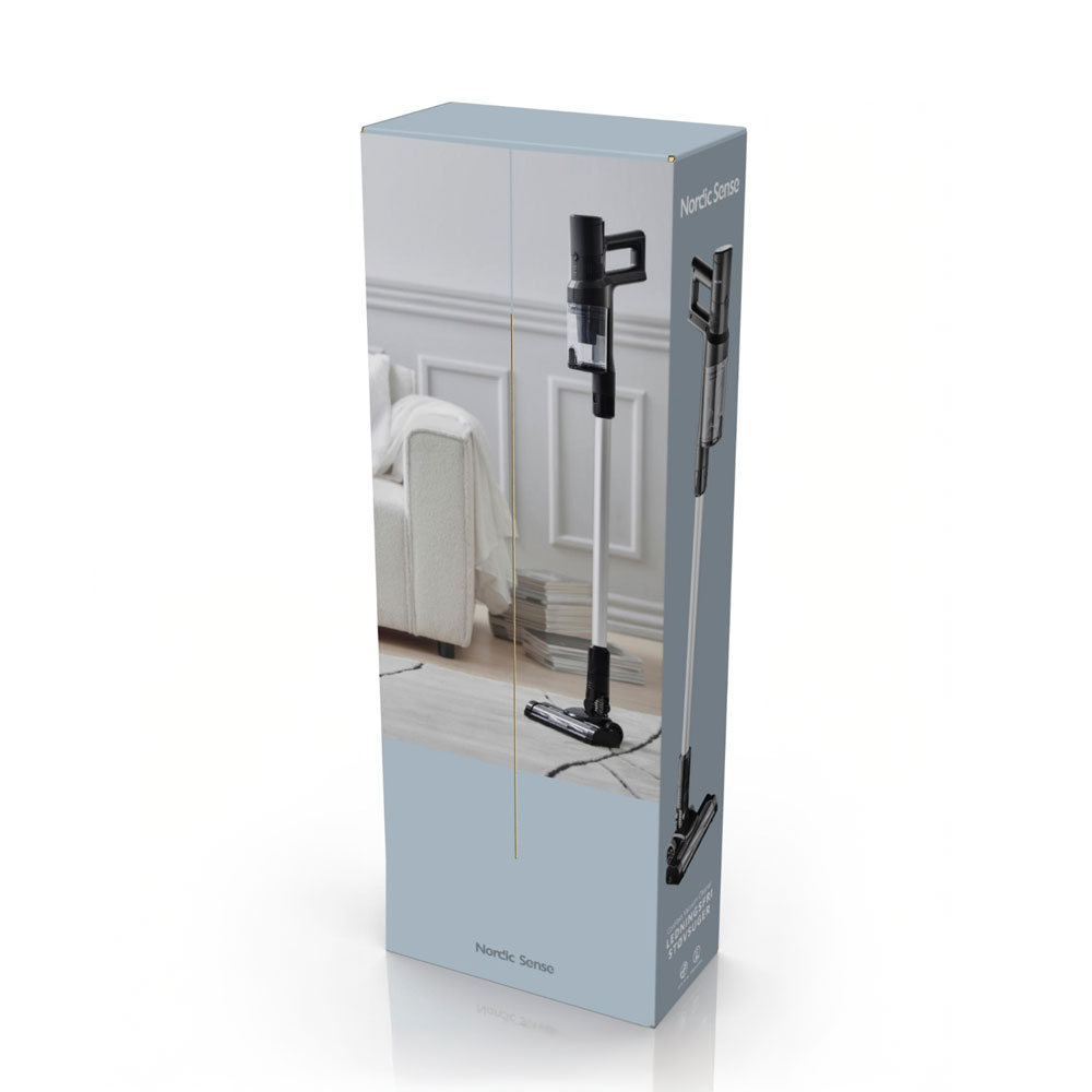 Denne ledningsfri støvsuger fra Nordic Sense gør rengøringen nem og fleksibel. Den kraftfulde DC-motor med turbofunktion leverer en stærk sugeevne med op til 40 minutters driftstid ved normal hastighed og 20 minutter på turbo. Det fleksible børstehoved med LED-lys gør det let at se støv og snavs, selv i mørke hjørner.