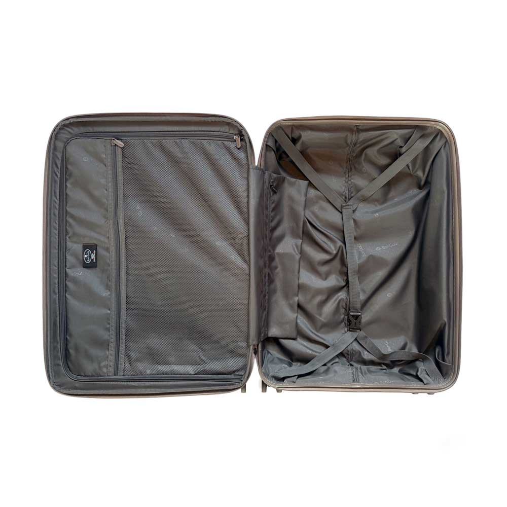 Madrid-sættet kombinerer flot design med funktionelle detaljer. De robuste kufferter har en perlemorsfinish, TSA-lås og dobbelte hjul.