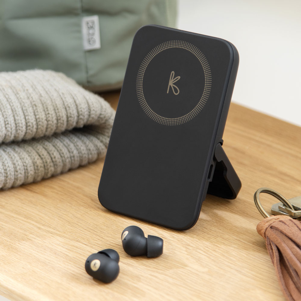 Kreafunk toCHARGE GO er en elegant alt-i-en løsning, der kombinerer trådløs opladning med indbyggede earbuds. Med magnetisk fastgørelse til iPhone 12 eller nyere oplader den din mobil, højttaler eller høretelefoner nemt og effektivt.