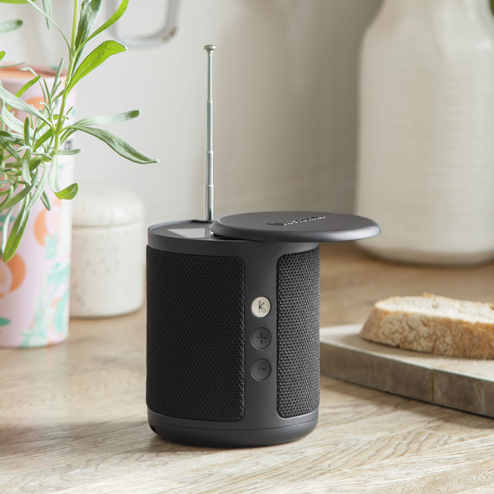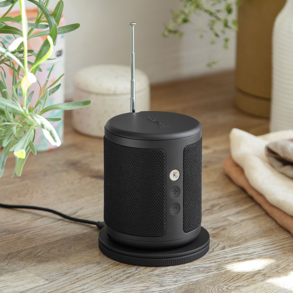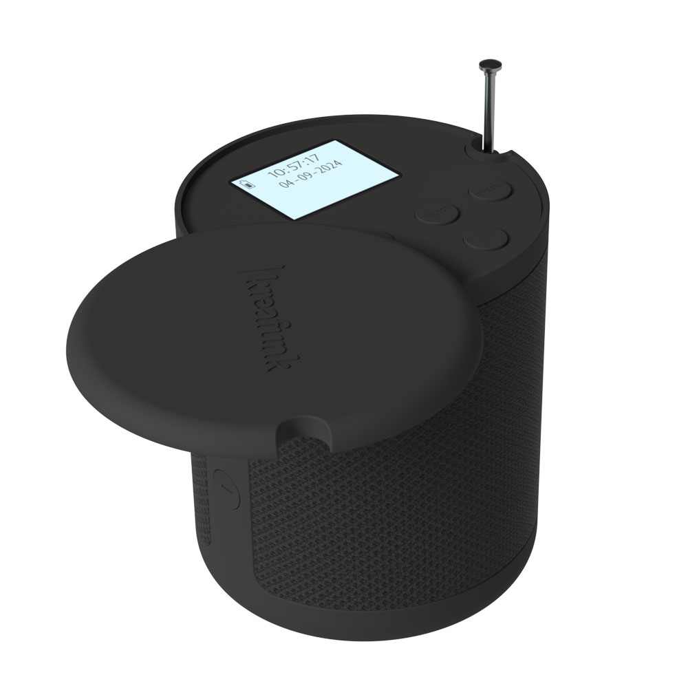 Kreafunk Dabbie kombinerer DAB+ radio, FM og Bluetooth-streaming i et elegant og kompakt format. Fremstillet af 100 % genanvendt plast og stof, leverer Dabbie skarp lyd og byder på smarte detaljer som trådløs opladning, vækkeur og skjult display.