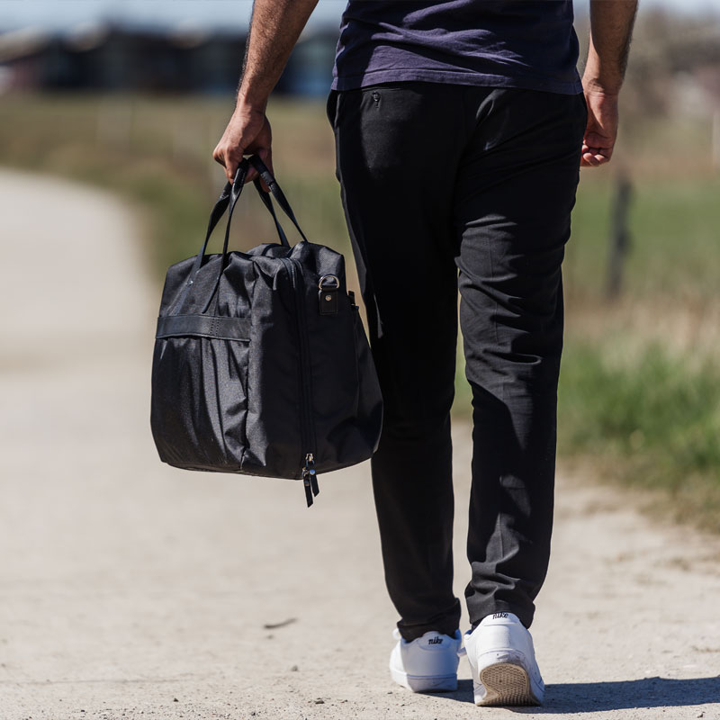 En yderst alsidig, rummelig og slidstærk taske med innovative features i lækkert moderne dansk design. Tasken er opdelt i 3 indvendige rum med 2 lynlåsopdelinger i fuld størrelse. I det midterste rum er der en vatteret computerlomme til 15” computer. Udvendig stor lynlås frontlomme i taskens fulde bredde, Columbia bøffellæder-håndtag og besætninger. Lang regulerbar skulderrem med læderbesætning og karabinhager. På bagsiden Columbia læderstrop, så tasken kan sættes ovenpå en trolley. Denne tidløse weekendtaske er velegnet som håndbagage på flyet, til en forlænget weekend eller når du skal i træningscentret. Tasken har plads til alt, hvad du kan få brug for på rejsen, til træning etc. – lige fra pas og computer til tøj og sko. Den smarte rumdeler i midten af tasken giver en godt overblik over indholdet og gør det muligt at folde taske helt ud ligesom en trolley.