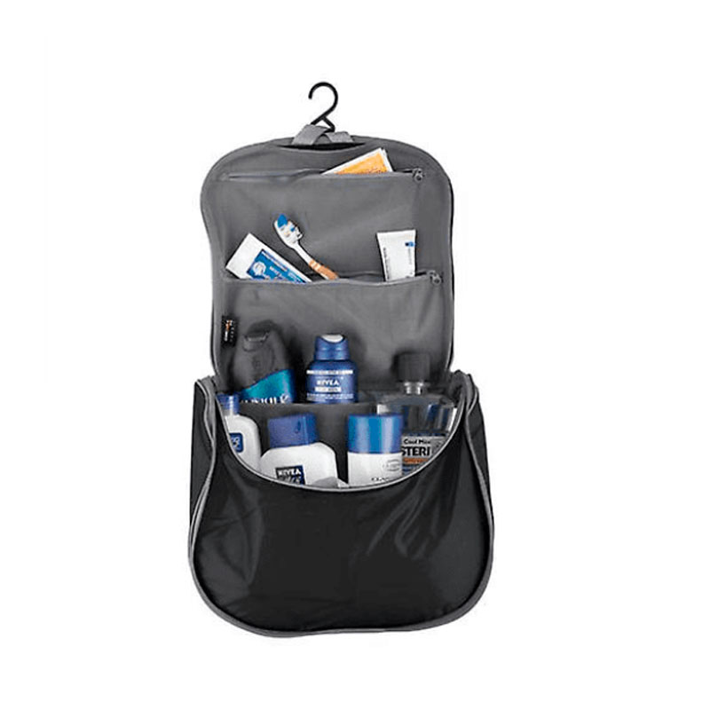 Toilettaske er er god til alle slags ferier og det er badeferie eller telttur.Alsidig toilettaske med ophæng med praktisk opdeling i mindre rum og lommer i gennemsigtig mesh med tværgående lynlås. Aftagelig spejl i lommestørrelse.