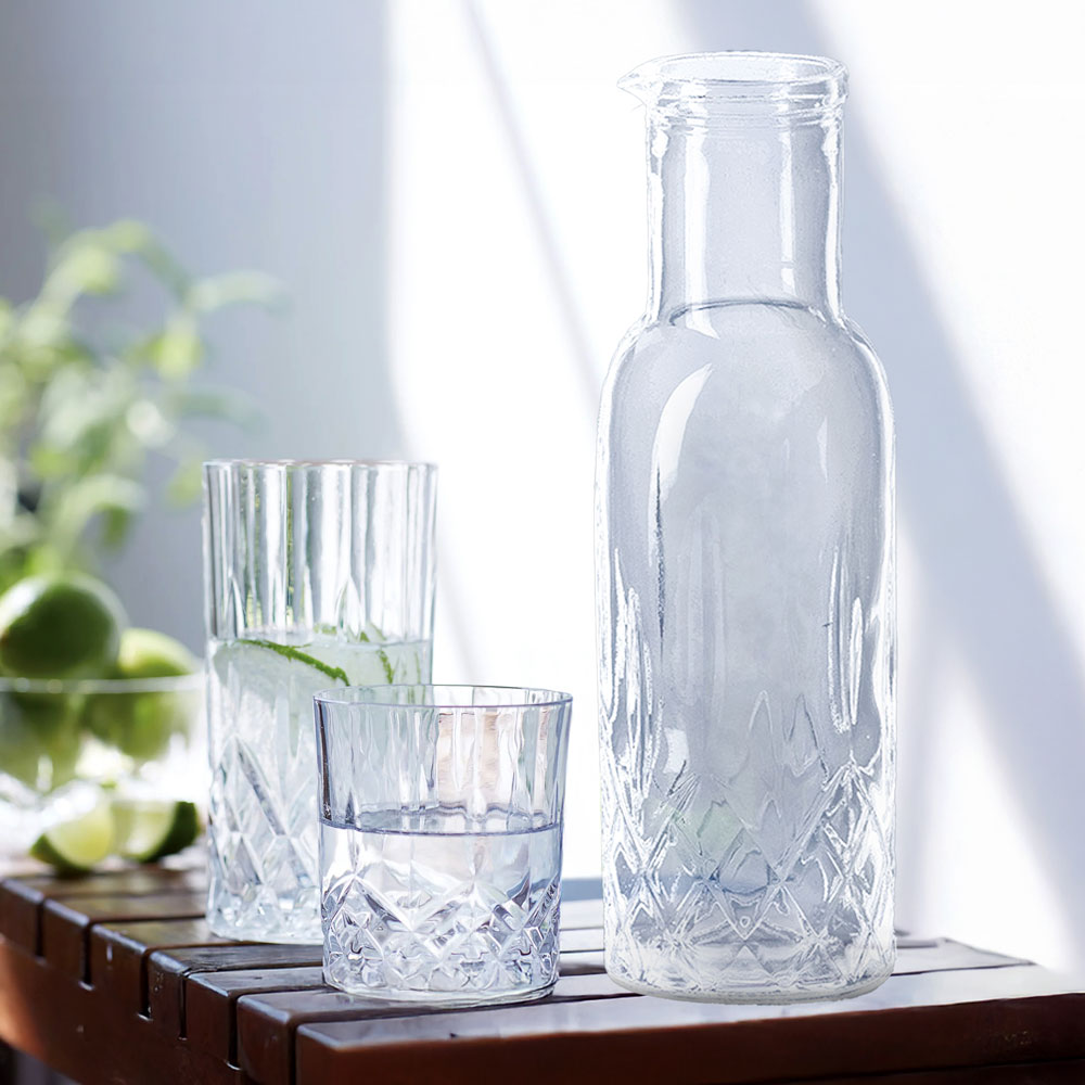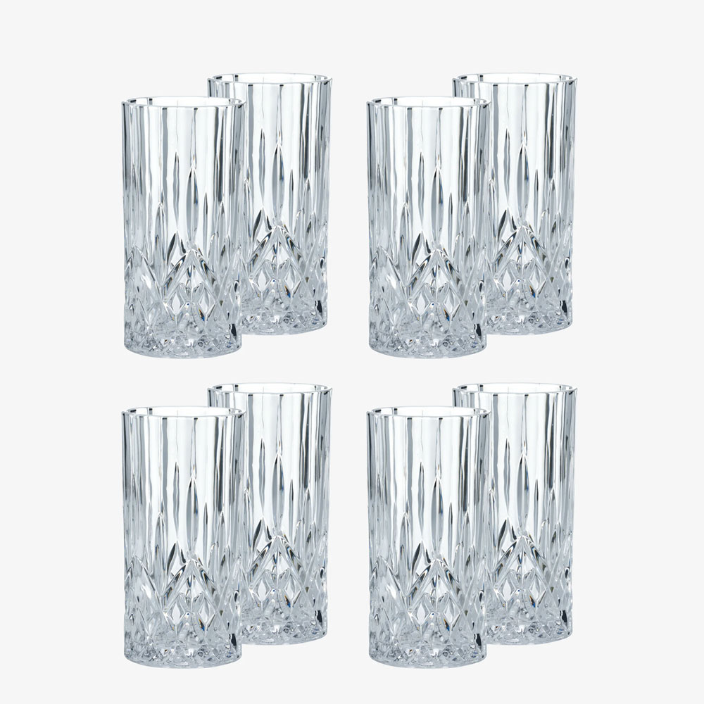 Det facetslebne mønster, inspireret af traditionelle krystalglas, fanger og reflekterer lyset på smukkeste vis. Resultatet er et eksklusivt udtryk, der løfter både whiskyen og borddækningen til nye højder.